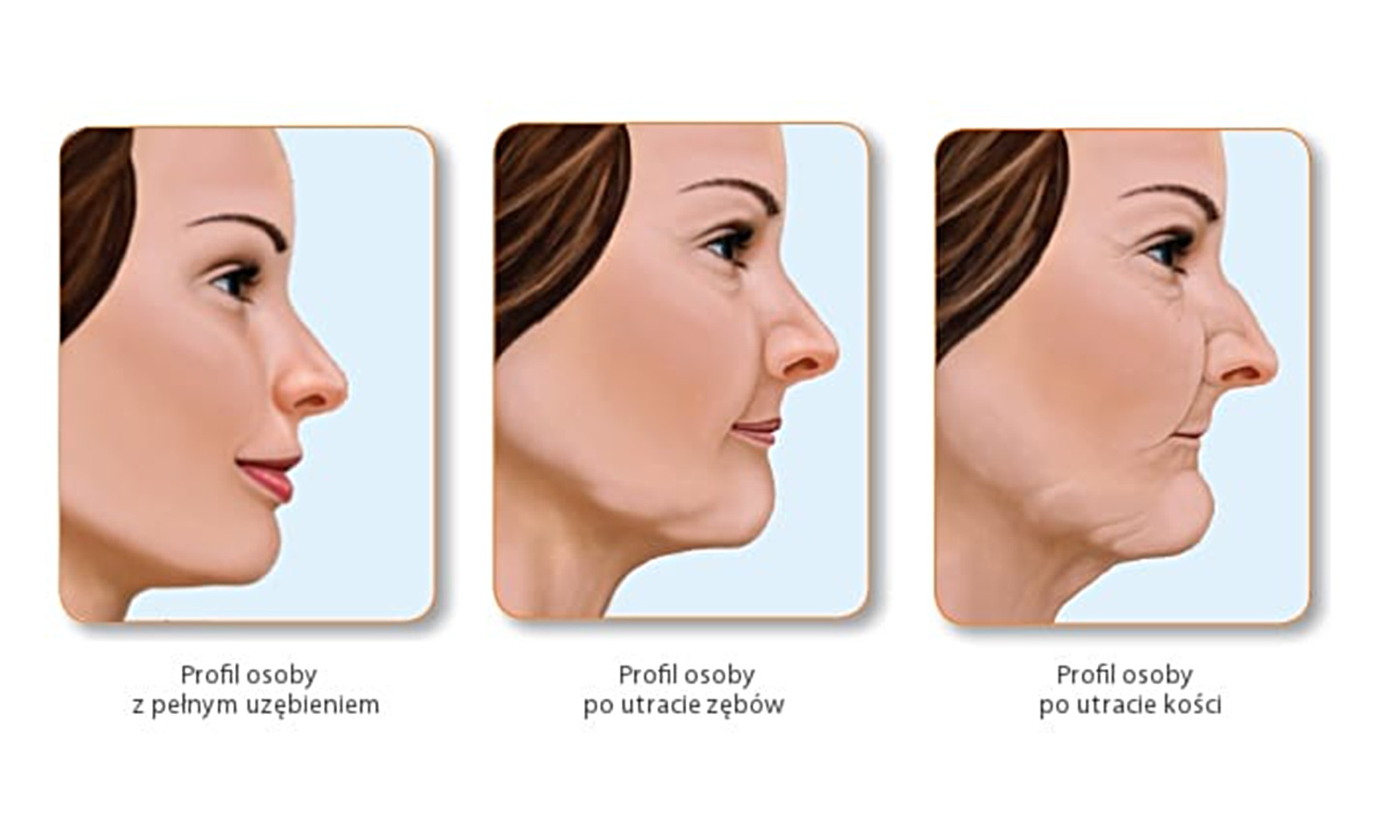 - wygląd twarzy tzw. „złośliwej Baby Jagi” – niekorzystnie zmieniają się rysy twarzy, nadając jej wygląd osoby starszej niż jest w rzeczywistości (głównie tak jest w szczególności w przypadku braków zębów trzonowych)